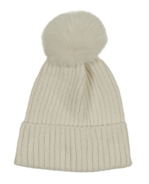 Biela žinylková rebrovaná čapica s brmbolcom