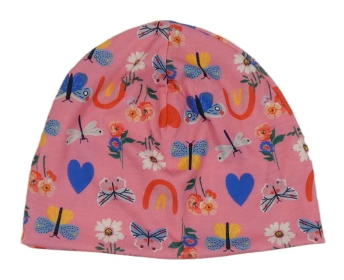 Ružová čapica s kvetmi a motýlikmi