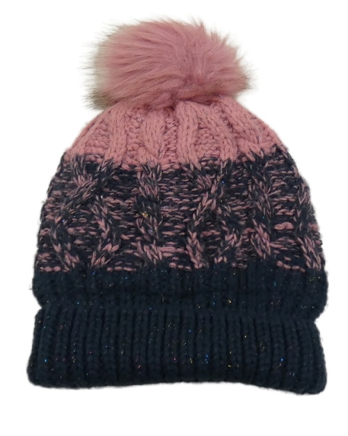 Tmavomodro-ružová melírovaná trblietavá čapica s brmbolcom Yigga