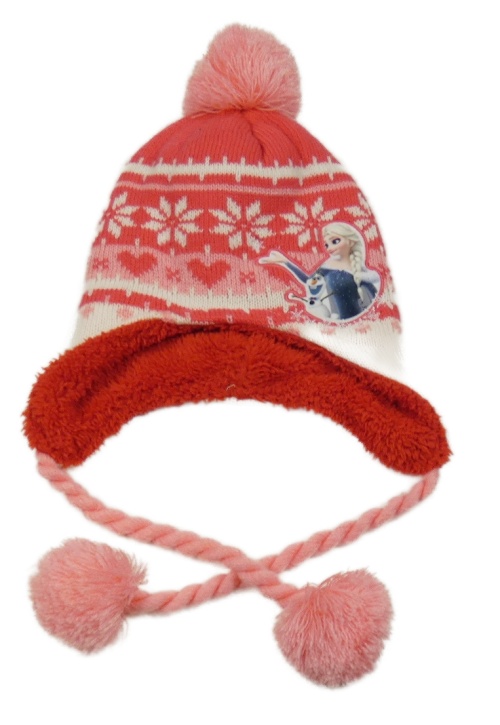 Jahodovo-bíllá vzorovaná pletená zateplená ušanka s Elsou Disney