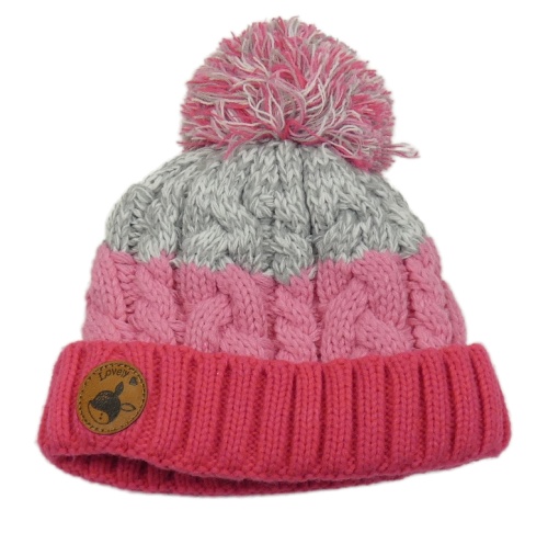 Ružovo-sivá pruhovaná copánková podšitá čapica s brmbolcom Kiki&Koko