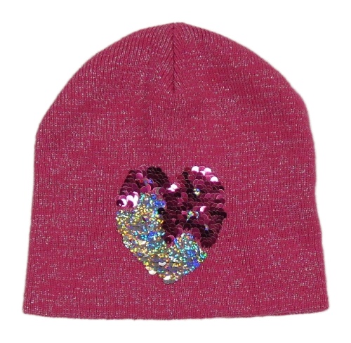 Tmavoružová trblietavá čapica so srdcem z překlápěcích flitrů Kiki&Koko
