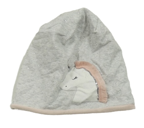 Sivá trblietavá čapica s jednorožcem vel. 6-8 let