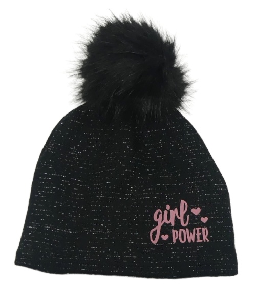 Čierna melírovaná pletená čapica s nápisom a brmbolcom Yigga