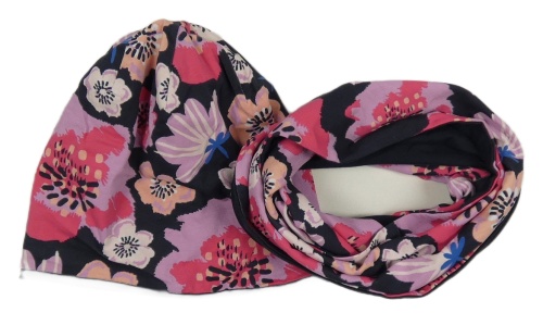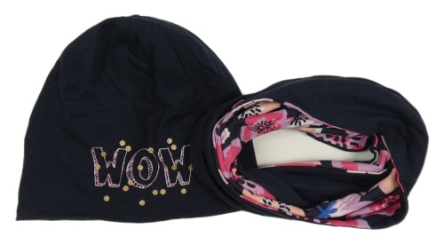 2set - Tmavomodrá bavlnená čapica s květy + nákrčník