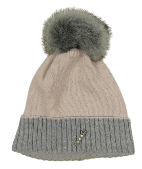 Svetloružová -strieborná pletená čapica s brmbolcom