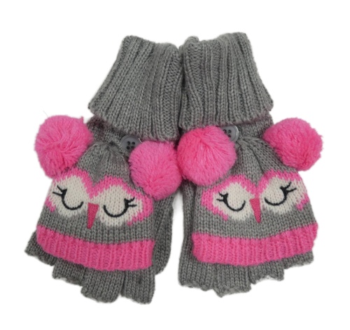 Nové - šedé pletené prstovo/palcové rukavice so sovami