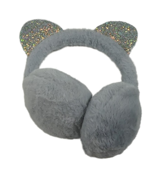 Šedé kožešinové klapky na uši s uškami s trblietkami