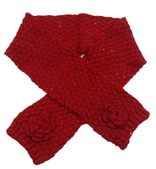 Červená trblietavá pletená šál s 3D kvety