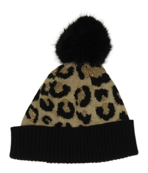 Béžovo-čierna vzorovaná čapica s brmbolcom River Island