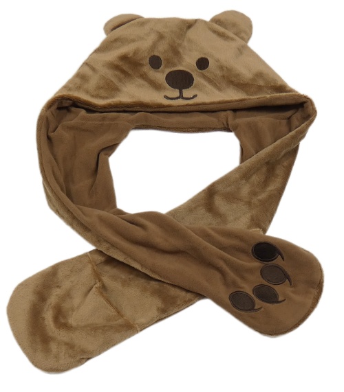 Hnedá plyšová čapica so šálou s rukavicemi - medvedík