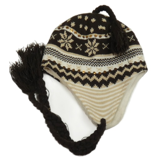 Kávovo-béžová vzorovaná čapica s flitrami a strapcemi
