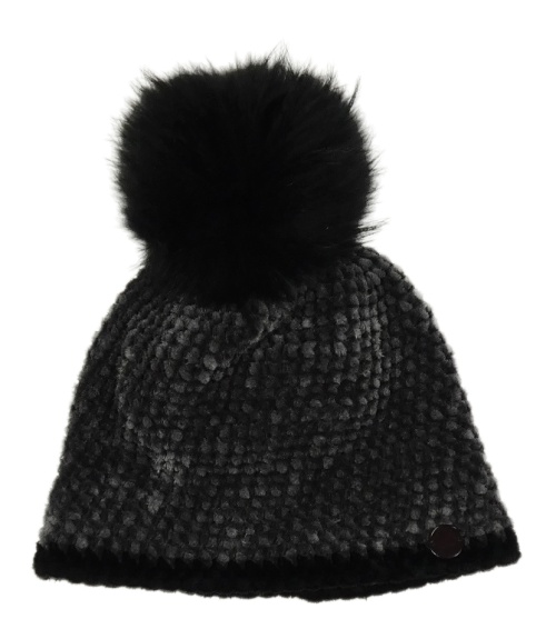 Tmavošedo-čierna plyšová čapica s brmbolcom