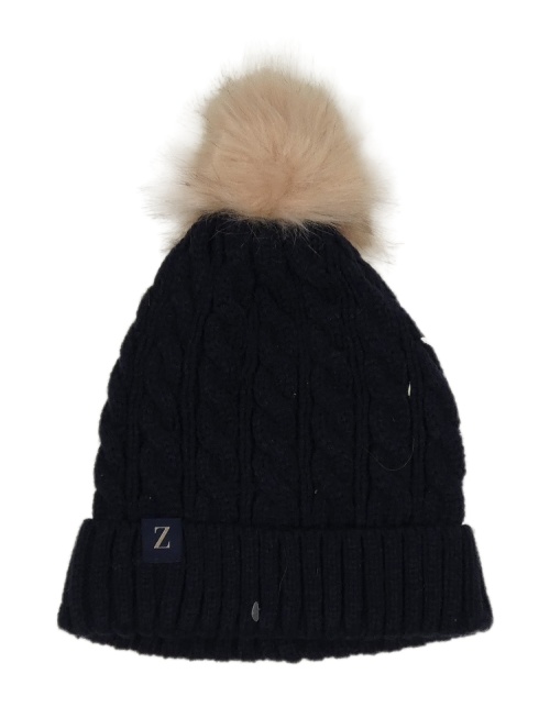 Tmavomodrá rebrovaná pletená čapica s brmbolcom Zoella