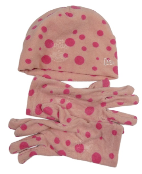2set - Růžová puntíkatá fleecová čepice + prstové rukavice