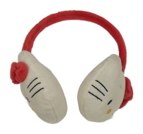 Bílo-červené plyšové klapky na uši - Hello Kitty