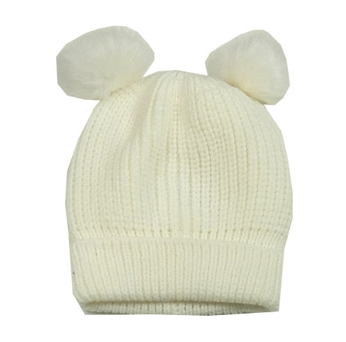 Smotanová pletená čapica s bambulemi