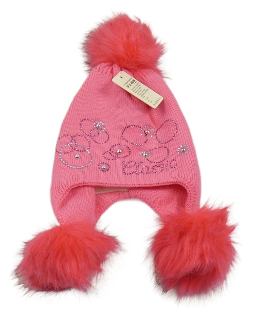 Nové - ružová pletená čapica s kamienkami a pecičkami a bambulemi