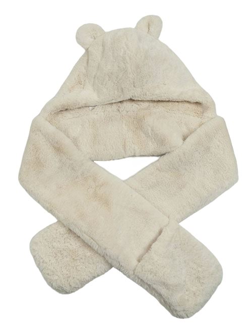 Smotanová chlpatá čapica so šálou a uškami Mantaray