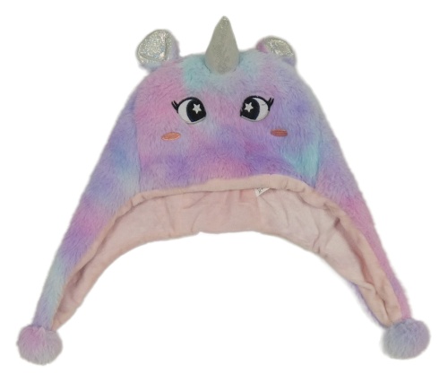 Duhová kožušinová zateplená čepice - jednorožec Dreamer