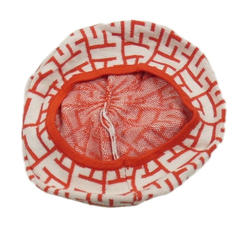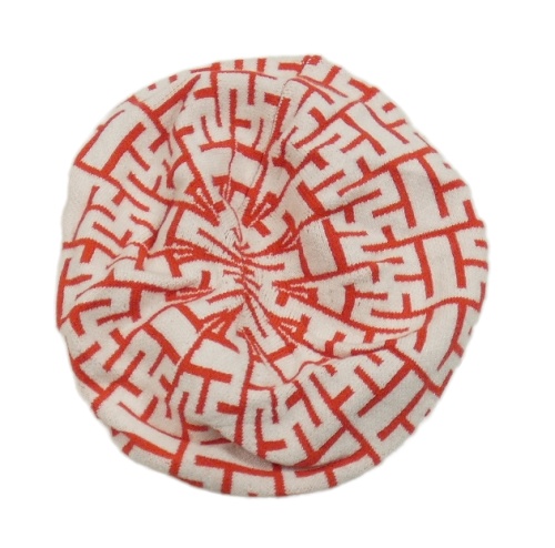 Bielo-červený vzorovaný pletený baretka