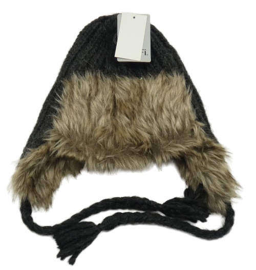 Nové - tmavošedá žebrovaná vlněná beranice s kožešinou