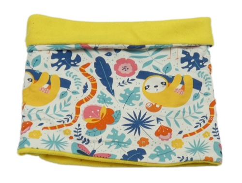 Bílo-barevný zateplený nákrčník so zvieratkami