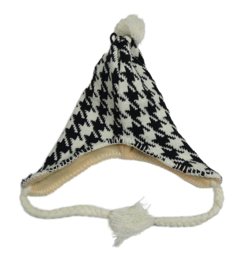Nové - čierno-biela vzorovaná vlnená čapica s brmbolcom
