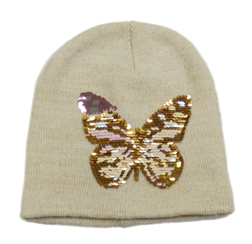 Smetanovo-zlatá melírovaná čapica s motýlkem z překlápěcích flitrů