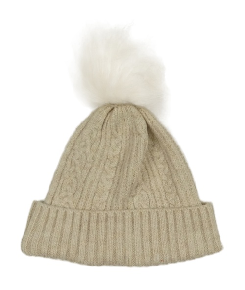 Svetlobéžová melírovaná rebrovaná vzorovaná čapica s brmbolcom