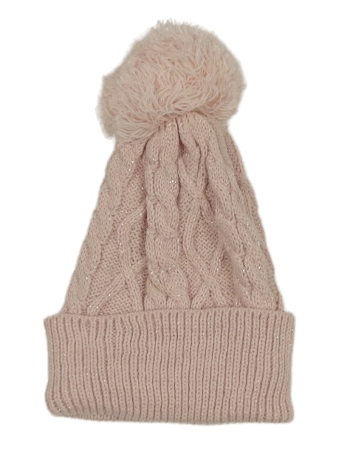 Svetloružová vzorovaná trblietavá pletená čapica s brmbolcom