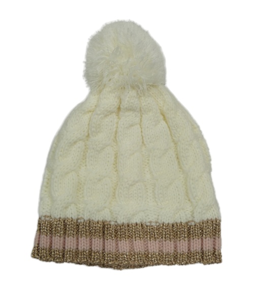 Bielo-zlato-ružová vzorovaná čapica s brmbolcom