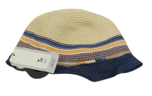 Nové - béžovo-tmavomodrý slaměný klobúk s pruhmi Tu