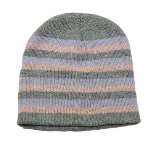 Sivo-světlerůžovo/fialová pruhovaná melírovaná pletená čapica