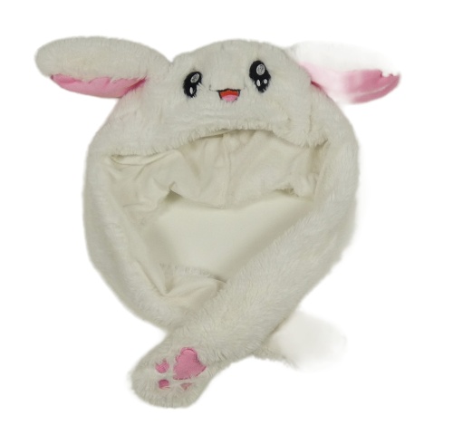 Biela chlpatá zateplená čapica s čumáčkem a uškami