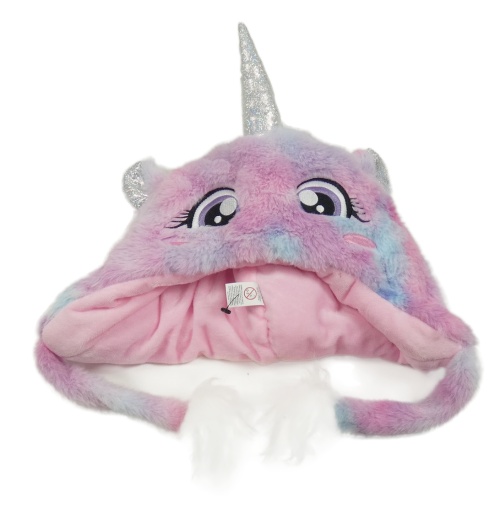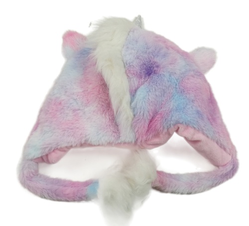 Růžovo-modro-lila chlpatá čepice - jednorožec