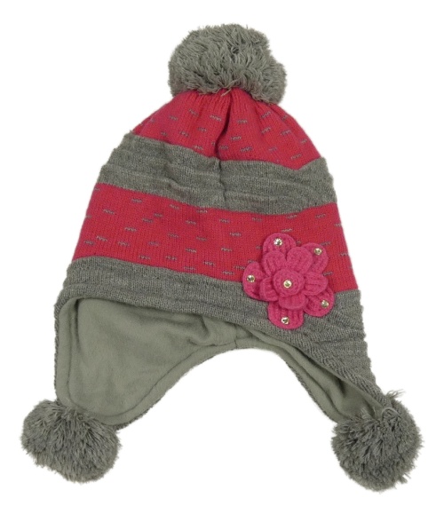 Malinovo-sivá pruhovaná čapica s kvietkom