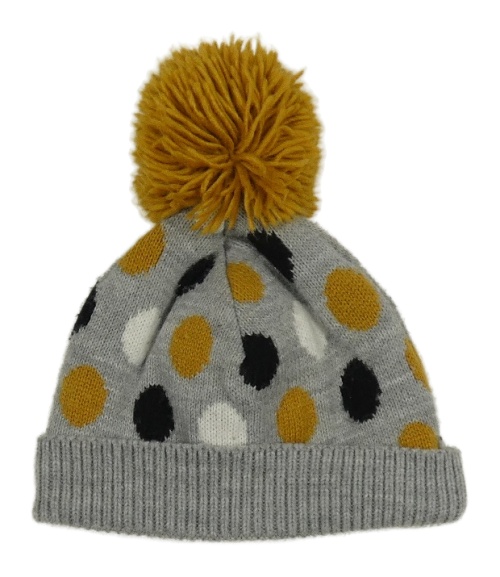 Sivá bodkovaná á melírovaná pletená čapica s brmbolcom Nutmeg
