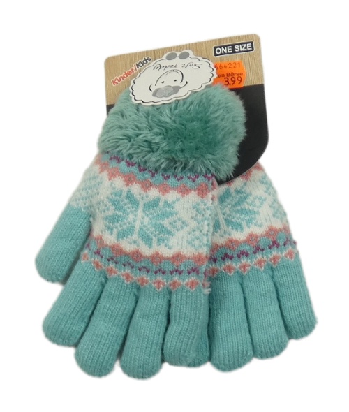 Nové - mentolovo-bílé zateplené prstové rukavice s vločkami a kožešinou