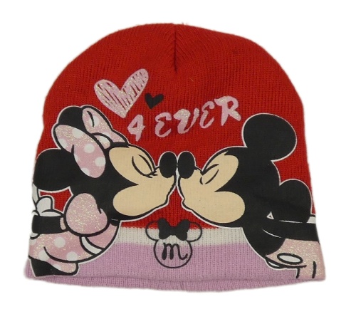Červeno-ružová pletená čapica s Minnie a Mickeym