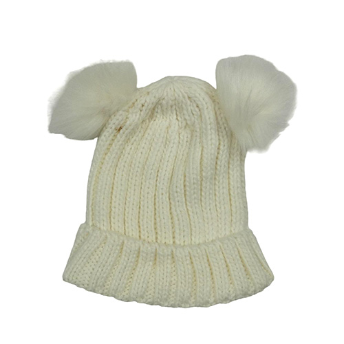 Smotanová rebrovaná pletená čapica s bambulemi Primark
