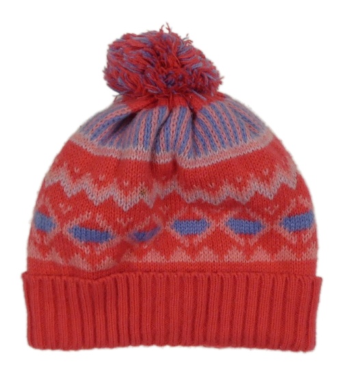 Jahodovo-modro-ružová vzorovaná pletená zateplená čapica s brmbolcom