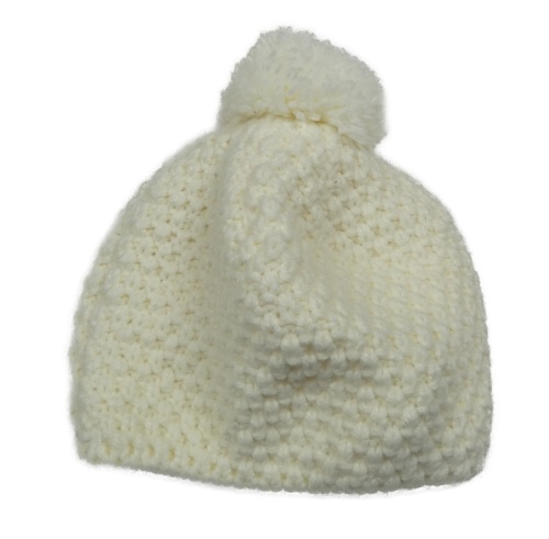 Smotanová pletená čapica s nášivkou a brmbolcom