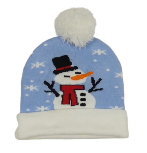 • Světlemodro-biela pletená čapica so sněhuláčkem a vločkami a brmbolcom EVA&CO