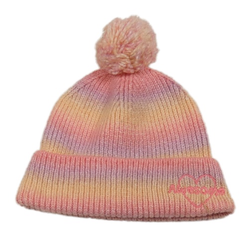 Ružovo-lila-oranžová ombré čapica s brmbolcom a nápisom