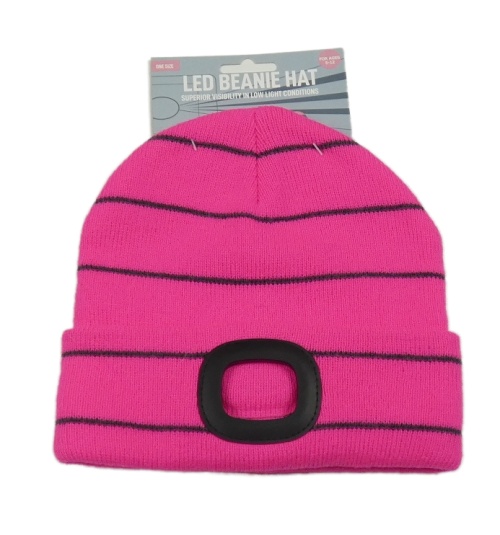 Nové - Neonově růžovo-šedá pruhovaná pletená čepice na led světlo