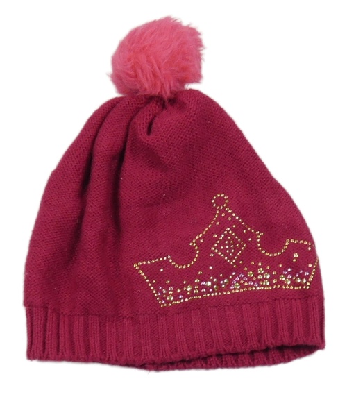 Fuchsiová pletená čapica s korunkou z kamínků a brmbolcom Disney