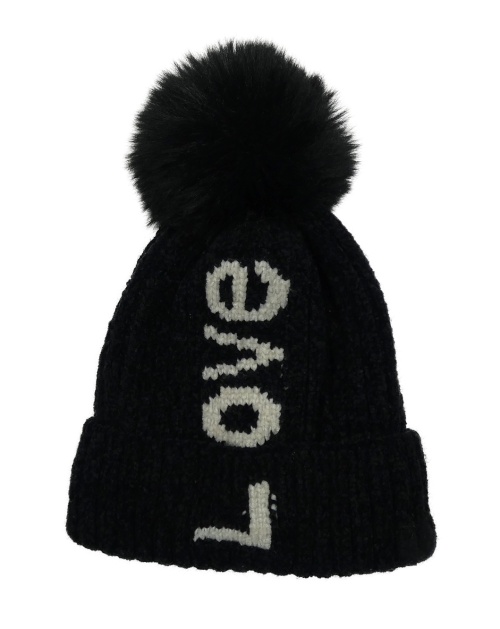 Čierna žinylková čapica s nápisom a brmbolcom