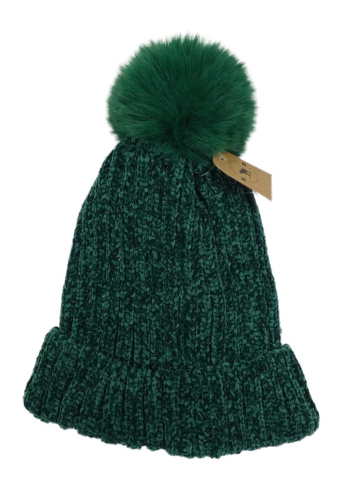 Nové - zelená žinylková čapica s brmbolcom