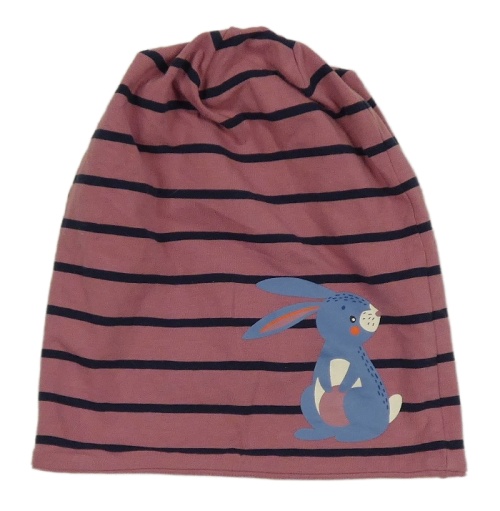 Starorůžovo-čierna pruhovaná bavlnená čapica s králikom